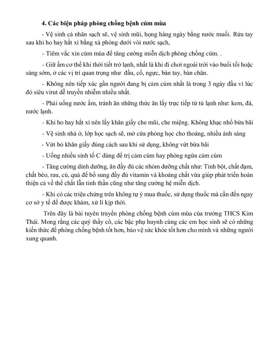 BÀI TUYÊN TRUYỀN PHÒNG DỊCH BỆNH CÚM MÙA