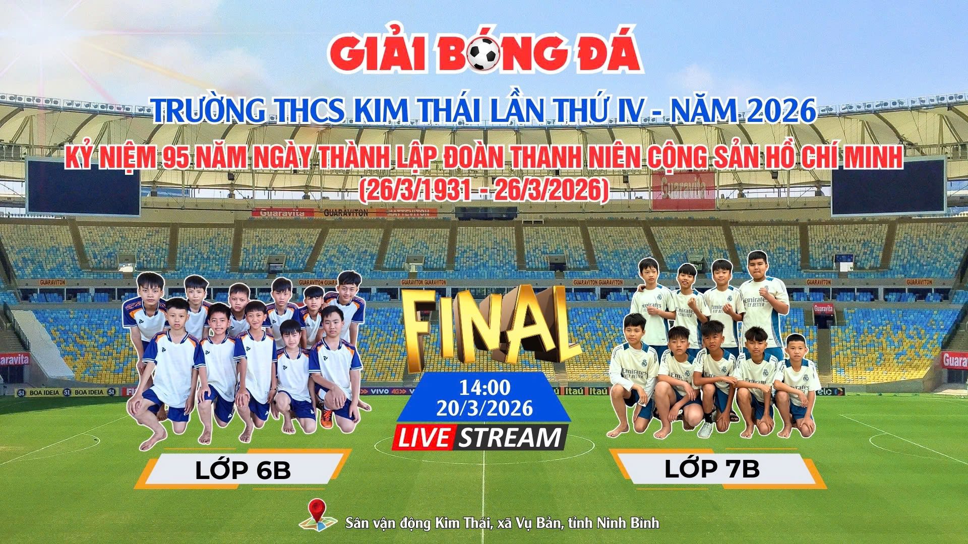 Hãy cùng đón xem vào: 14h thứ 6 ngày 20/3/2026 tại sân vận động Kim Thái